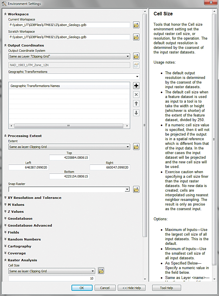 4. Expand Raster Analysis and set the cell size to Same as layer “Clipping Grid”.