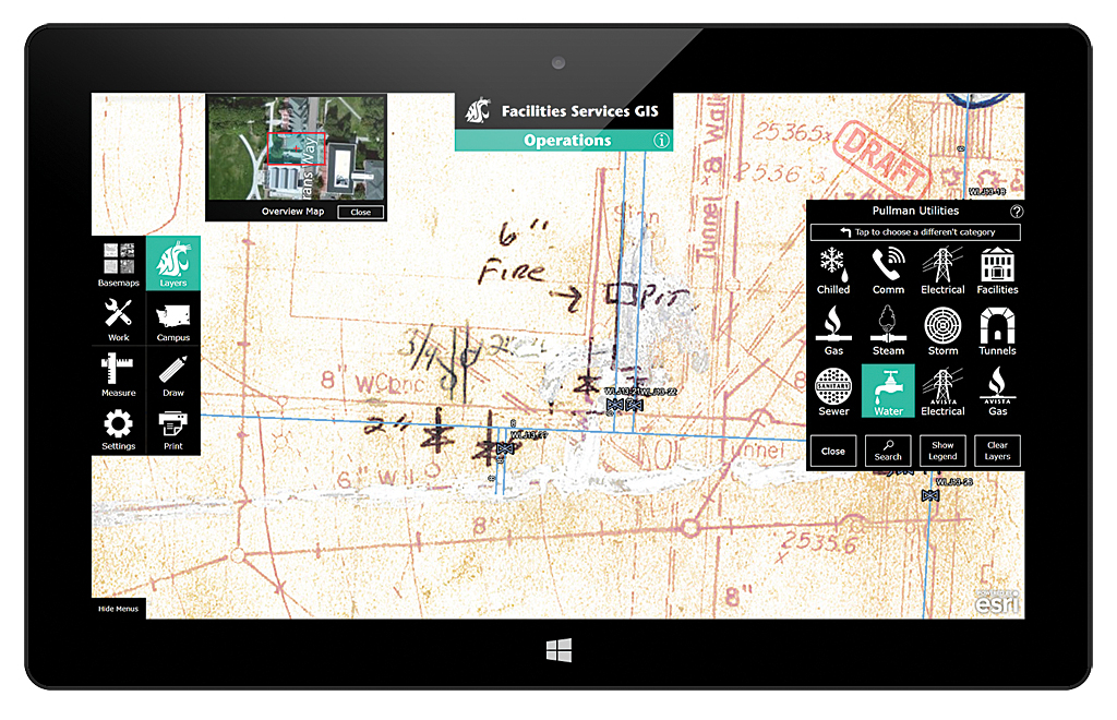 Throughout its 124-year history, WSU has experienced several large construction booms. Over the last 15 years, WSU has built or performed major renovations to nearly 40 facilities on the main campus in Pullman, Washington, causing massive changes to the utility systems. The university’s utility maps became terribly out of date and led to many “surprises” in the field. To get by, crews resorted to creating and redlining their own paper maps.