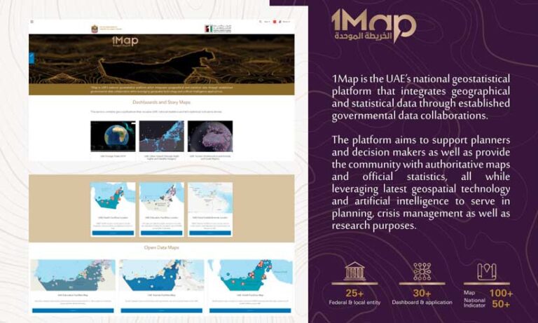 1Map is the UAE’s national geostatistical platform that integrates geographic and statistical data through established governmental data collaborations. The platform aims to support planners and decision-makers across diverse sectors as well as provide the community with authoritative maps and official statistics through leveraging the latest geospatial and artificial intelligence (AI) technology to support planning, crisis management, and research.