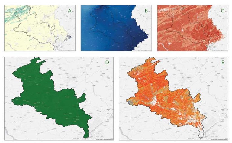 In the last step, identifying the upslope land cover flagged planting sites where upland land uses were more likely to generate pollution. It paired the 1-meter land-cover data with National Hydrography Dataset catchments to identify catchments with higher developed and agricultural land. Planting sites in these catchments received higher scores than those with more natural land covers such as forests.