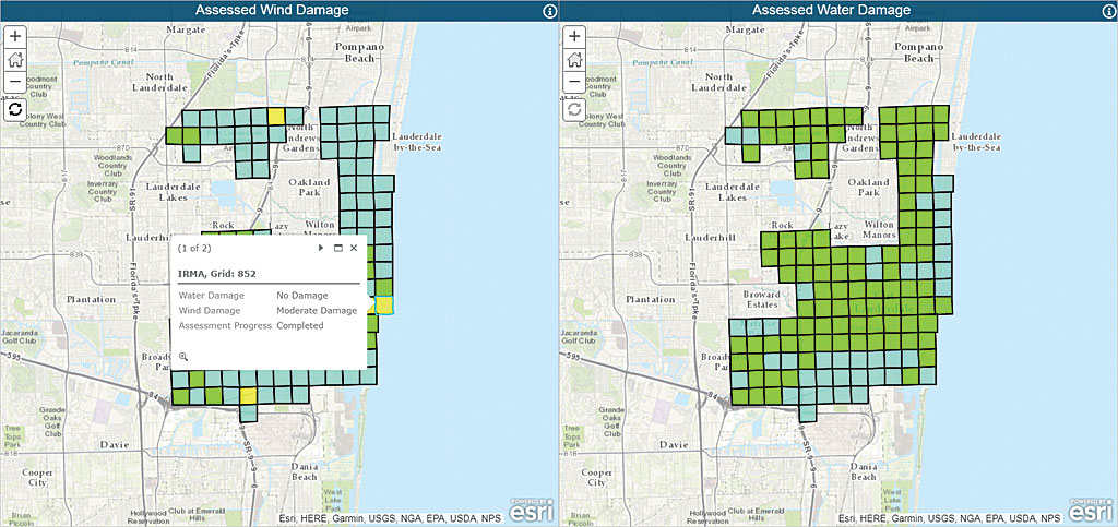 In Fort Lauderdale, the Fire-Rescue and building inspection staffs team up to conduct this assessment. The Fort Lauderdale RIA Viewer, a web mapping app, was used by the EOC to track damages throughout the city as they were reported.