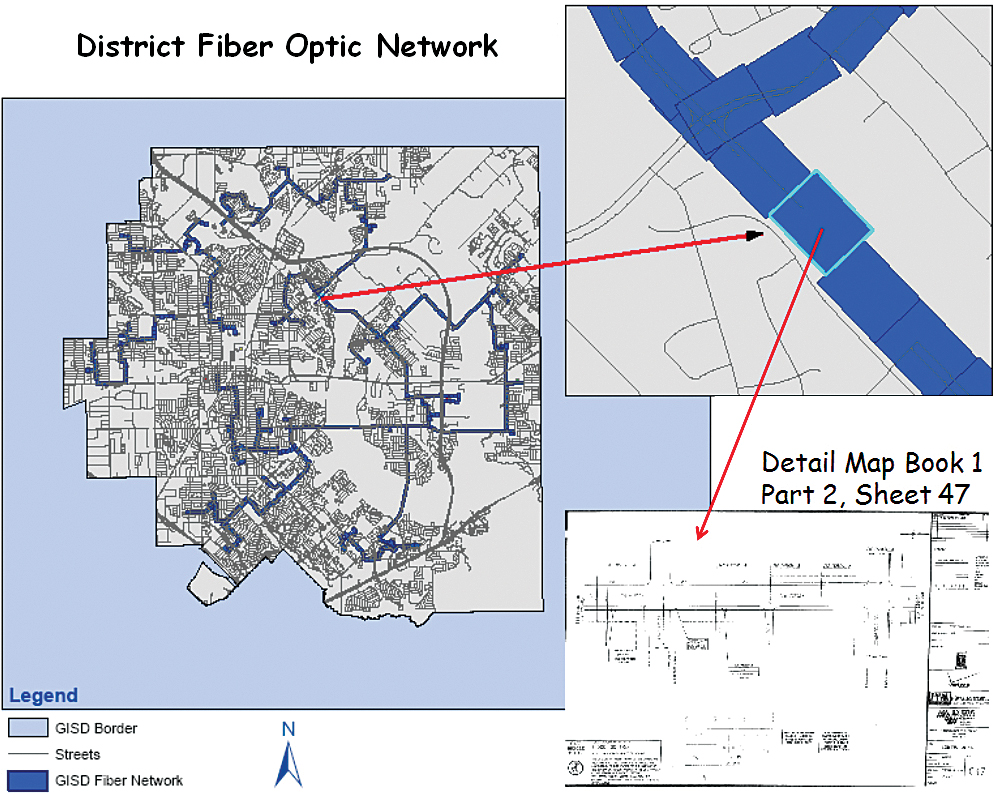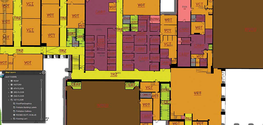 For several years, the district used Autodesk’s AutoCAD for facilities management. The district’s AutoCAD facilitator was responsible for converting all paper drawings into AutoCAD drawings and maintaining facility floor plans during the district’s $385 million bond program. Approximately four years ago, the facilities department began implementing a GIS to be used in conjunction with AutoCAD. The district retained all facility floor plans in AutoCAD while using GIS to provide easy access to site plans, floor plans, room numbers, and data referenced to them.