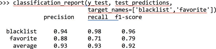 Listing 6 shows the accuracy of this model on this dataset. Precision refers to the model’s ability to correctly identify whether a given property is a favorite or not. Recall refers to its ability to identify all favorites in the test set. The f1-score computes the harmonic mean of precision and recall to provide a combined score of the model’s accuracy.