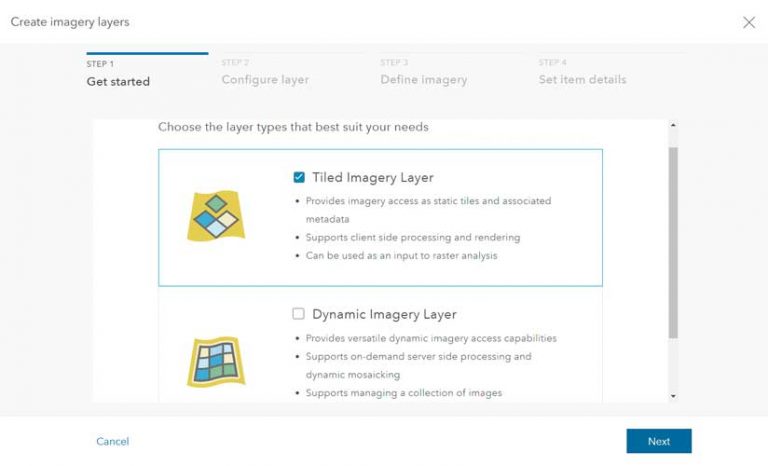 Imagery uploaded to ArcGIS Image for ArcGIS Online can be saved as a tiled imagery layer or as a dynamic imagery layer. Layers of either type can be used as input for raster analysis. Both layer types retain pixel information, pixel values for any location, and image metadata.