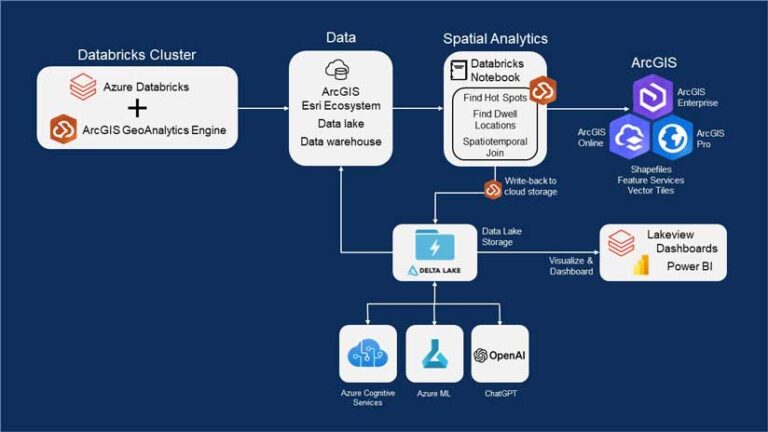 JAKALA is a Databricks partner and utilizes a comprehensive integration of Databricks’ platform to leverage the scalability and performance provided by that platform. Databricks provides an Apache Spark-based cloud platform with a unified set of tools for building, managing, and working with data at scale. GeoAnalytics Engine can work with Databricks using Azure, Amazon Web Services (AWS), or the Google Cloud platform as part of an integrated spatial analytics environment connected with the Databricks lakehouse architecture.