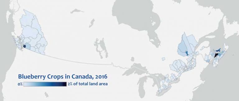 - Removing the middle of the map also helped emphasize the lack of blueberry crops in central Canada.