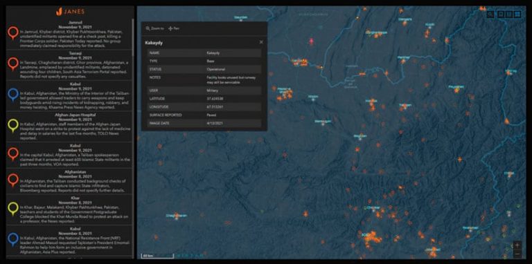 Conklin brought in the team at Janes that is responsible for OSINT for real-time unfolding events, such as political unrest, invasions, and terrorist attacks. The team turned all its attention to Afghanistan and the surrounding countries and gathered data that could augment the OSINT Tracker dashboard.