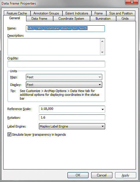 Open data frame properties and confirm the coordinate system is correct before continuing.
