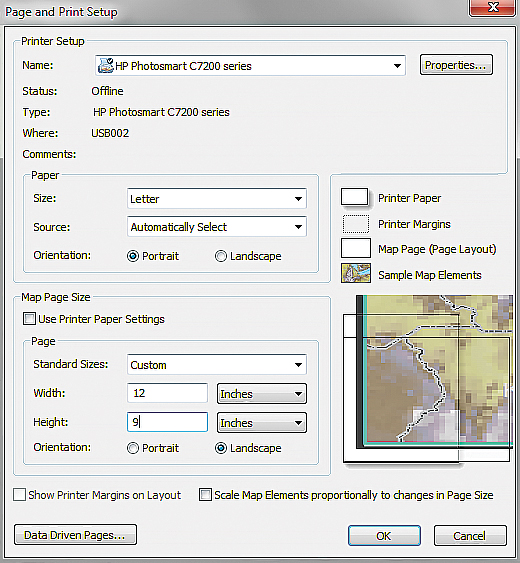 Often, clients ask me to prepare a map with a 4 x 3 aspect ratio without margins for use in a report or PowerPoint presentation. Save your project with a new name that includes “4 x 3.” Use Page Setup to resize the data frame to 12 x 9 inches and shrink the map to fit the full frame. Create new guidelines and adjust the font size and position of all text and cartographic objects. Modify the Reference Scale to avoid resizing point symbols and attribute-based labels. Use scale-defined bookmarks to pinpoint areas of interest on the map for multiple exports.