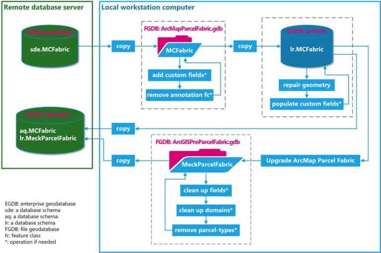 Jack Chen is a GIS developer in the Geospatial Information Services (GIS) division of the Mecklenburg County Land Use and Environmental Services Agency in North Carolina. He was tasked with migrating the county’s ArcMap parcel fabric from to ArcGIS Pro parcel fabric and performing data verification. This article, describing how he accomplished the migration, will be helpful to GIS managers in other counties who plan to migrate to a newer parcel fabric version. It will also benefit GIS administrators, analysts, and developers who might participate in the migration and are familiar with SQL.