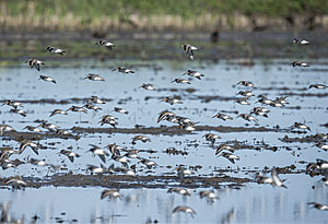 Working in partnership with Cornell Lab of Ornithology and Point Blue Conservation Science, TNC uses predictive models of water bird occurrence and abundance and surface water availability to target times and places predicted to have high bird occurrences and abundances but lack habitat availability. Since piloting the program in the spring of 2014, BirdReturns has targeted shallow water habitat for shorebirds from February to March and from mid-August to October. These are time periods when predicted shorebird needs are great but appropriate habitats may be in short supply.