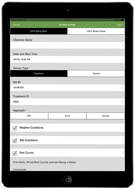 Historically, TNC—as well as most other organizations conducting field research and monitoring—has used paper surveys to record field observations. Once staff returned from the field the data was transferred to computer spreadsheets. However, there was strong interest in having this information recorded in a digital format from the onset of monitoring so that it could be uploaded to a central data location accessible by the BirdReturns team.