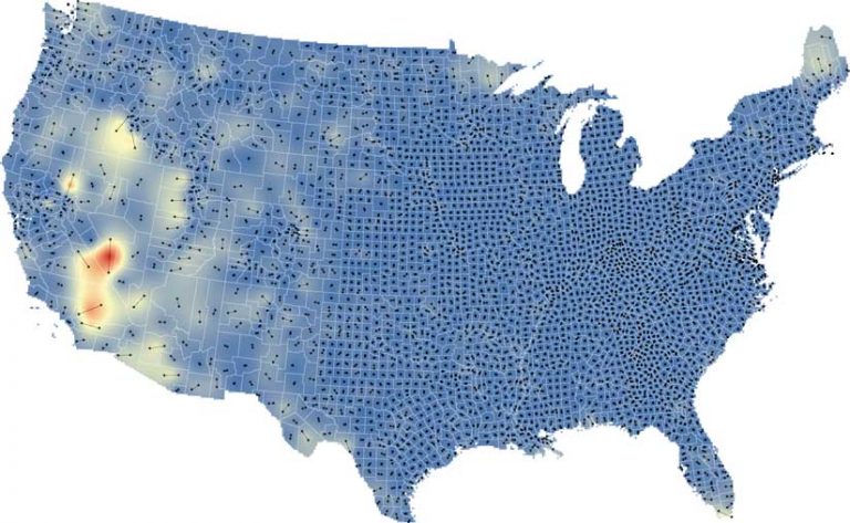 The maps the author produced show large discrepancies between population-weighted and geometric centroids. Large counties in the western United States and Alaska have centroids in quite different places. Although county size is one of the primary reasons why the geometric and population-weighed centroids differed, climatic and population factors also played a strong role.