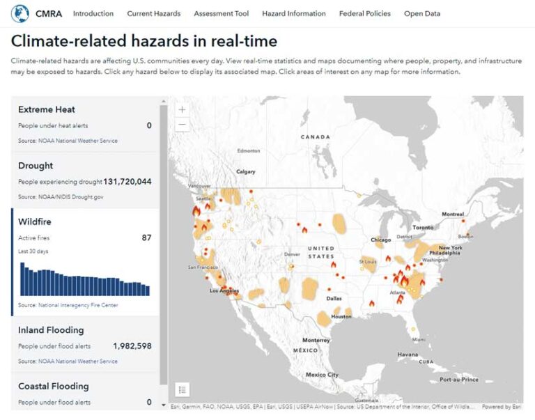 Nationally, the Climate Mapping for Resilience and Adaptation (CMRA) portal, the result of a collaboration between Esri and the National Oceanic and Atmospheric Administration (NOAA), explores current and projected climate conditions. This data highlights climate risks where we live and work, helping communities better prepare. And it elevates equity, an important metric that may make places eligible for government funding to build up resiliency. At an announcement for the portal, Phoenix mayor Kate Gallego noted that the city is spending tens of millions of dollars on climate resilience, “and this tool will help me understand where the most effective places are to put these dollars.”