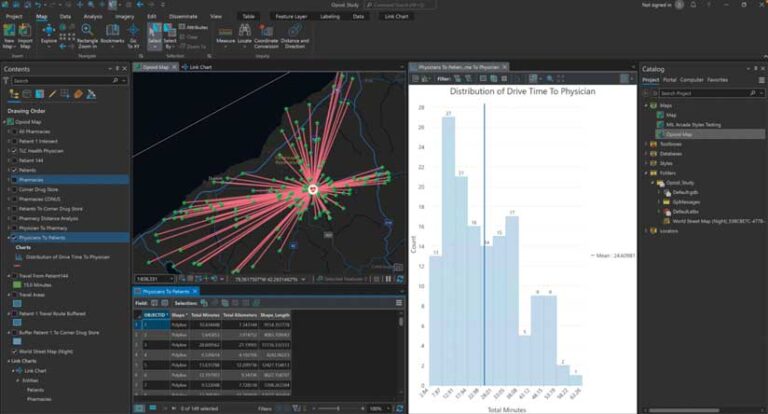 Combining data regarding patients, physicians, treatment centers, and opioid prescriptions can be overwhelming. It is difficult to track relationships without the right software. With limited resources to tackle this issue, auditors need to know where to best focus their efforts. They need to examine the networks formed by physicians, treatment centers, pharmacies, and patients through a geographic lens.