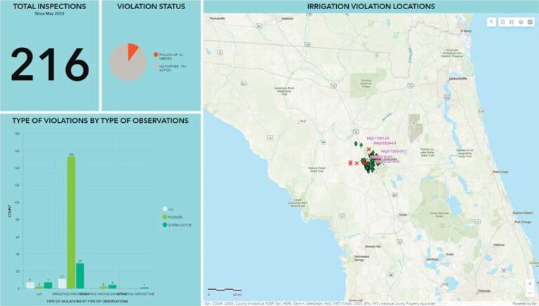 The Irrigation Restriction Program aims to curb unnecessary water use and minimize runoff that may impact local springs and natural waterways. Throughout the year, EPD uses ArcGIS Field Maps from Esri to track properties that violate the irrigation restriction code.