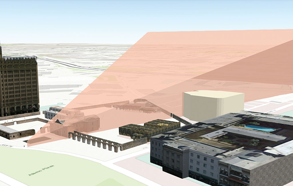 Engineers working on a project to restore the original site of the battle of the Alamo and preserve its viewshed are using 3D GIS visualization of the site as part of the restoration plan.