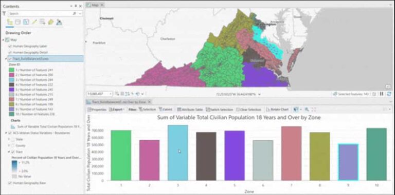 Now that you understand how Virginia’s veteran population is distributed across space, you can use two geoprocessing tools in this workflow—Build Balanced Zones and Dissolve—to perform analysis.