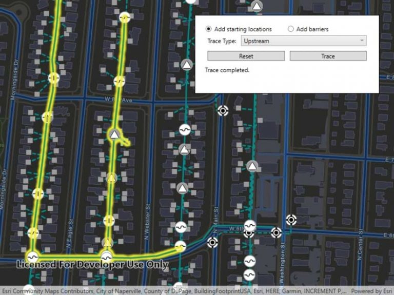 With the 100.7 release of ArcGIS Runtime SDKs, subnetwork, downstream, and upstream traces have been added to provide a full suite of options. The subnetwork trace discovers all features that participate in a subnetwork (i.e., a logical subset of the network such as a circuit or a zone). The downstream trace option finds out what is being fed from a specific part of the network. The upstream trace is useful to discover what’s feeding a specific part of the network.