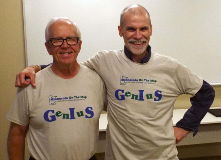 In addition to his work with students, Hanson mentored more than 40 teachers and inspired many geography teachers like Charlie Fitzpatrick, an Esri industry solutions manager for education. “Jim Hanson changed my teaching back in 1986,” said Fitzpatrick. Hanson was presenting at the Minnesota Geography Alliance workshop. He showed data about countries of the world and asked simple questions.