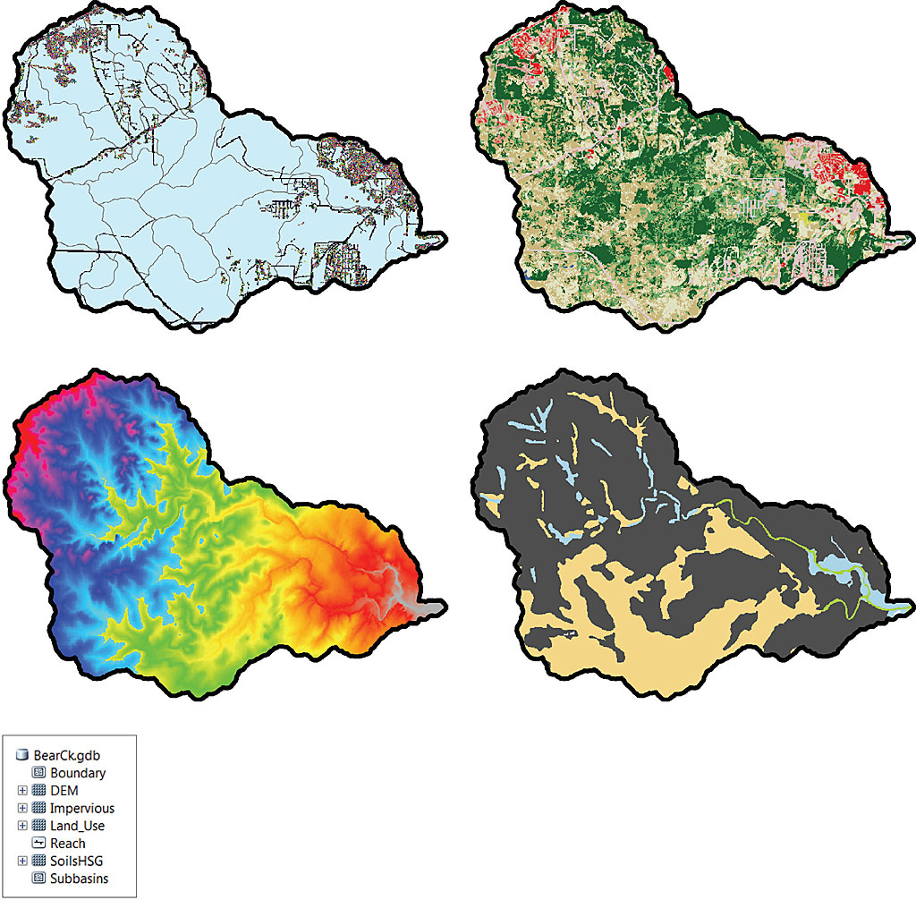 Datasets commonly used to determine the physical properties of a watershed include digital elevation, land use, impervious cover, and soil classifications. Much of this data is spread across various websites, each with unique methods for downloading and extracting information. Once obtained, the data must often be manually processed to remove seams and ensure a common coordinate system. Depending on the quality and availability of the spatial information, this data management process may require significant effort by an experienced GIS user.