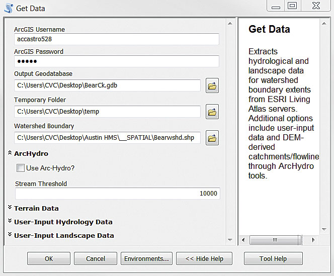 HMS-PrePro uses the watershed bounding polygon as a common denominator to connect these distinct datasets into a comprehensive hydrologic geodatabase. The data is extracted from the Living Atlas server and then preprocessed in GIS to expedite the development of models, thus bridging the gap between hydrologic data and spatial analysis. Using the Living Atlas data service, a spatial database for a watershed of interest may be created expeditiously. HMS-PrePro may also be used to combine web-based datasets with local data into a common coordinate system for increased flexibility.