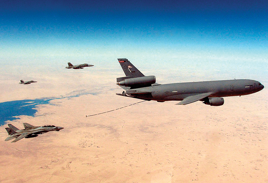 Using GeoExPT, a GIS planner lines up aircraft silhouettes that have accurate dimensions, in the order requested, taking into account the limitations of the airfield, established aircraft parking standards, and Air Force Instruction guidelines. When planning for mobility aircraft, which include large aircraft like the KC-10 Extender (an aerial refueling tanker) and the C-17 Globemaster III (a military transport aircraft), these considerations might include ramp weight limits and wingspan. Once completed, the map is provided to the requester, who uses it for decision making and planning.