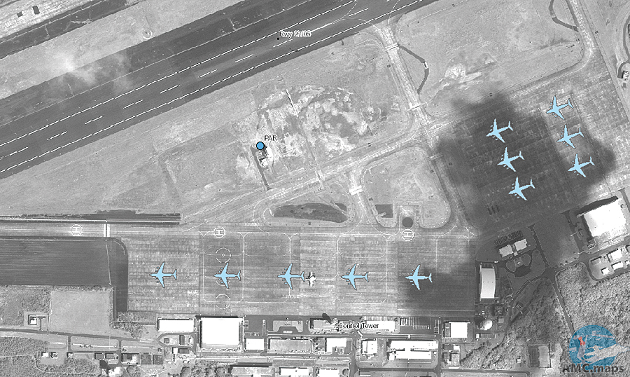 AMC’s global air mission means that at a moment’s notice, aircraft and crew can be called to anywhere in the world. GIO staff supported the 18th Air Force planners who were preparing for the presidential visit by providing aircraft parking plans for Ascension Island as a possible mission hub for this event. GIO provides a geospatial picture of possible aircraft parking arrangements by supplying maps that assist in determining ramp space on an airfield. While parking plans make up only a small part of the logistics required to move the president around the world, they play an important role in preparing for operations that require large movements of aircraft, like the Ascension Island operation.