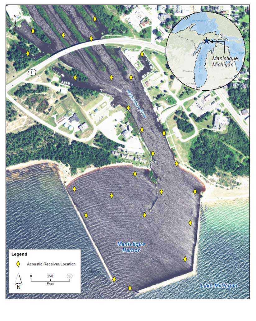 With funding from the Great Lakes Restoration Initiative, a team of researchers from the US Environmental Protection Agency (EPA) Great Lakes Program Office, the US Army Corps of Engineers (USACE), Michigan Department of Natural Resources (MiDNR), Biohabitats Inc., EA Engineering, and Lotek Wireless conducted a five-month study beginning in June 2016 to track the daily movements of carp in the harbor located at the mouth of the Manistique River. This was part of a study to establish the home range and residency of the carp population occupying the harbor. It would ultimately aid in locating polychlorinated biphenyl (PCB)-contaminated toxic hot spots in the harbor’s bottom sediments.