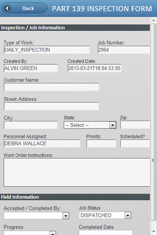 GEO-Jobe eliminated that cumbersome process by creating a Part 139 Inspection app that enables field crews to create, dispatch, and complete work orders and inspection reports on the fly. With the app, the operations manager can also track the status of inspections and work orders and locate his field crew at all times.