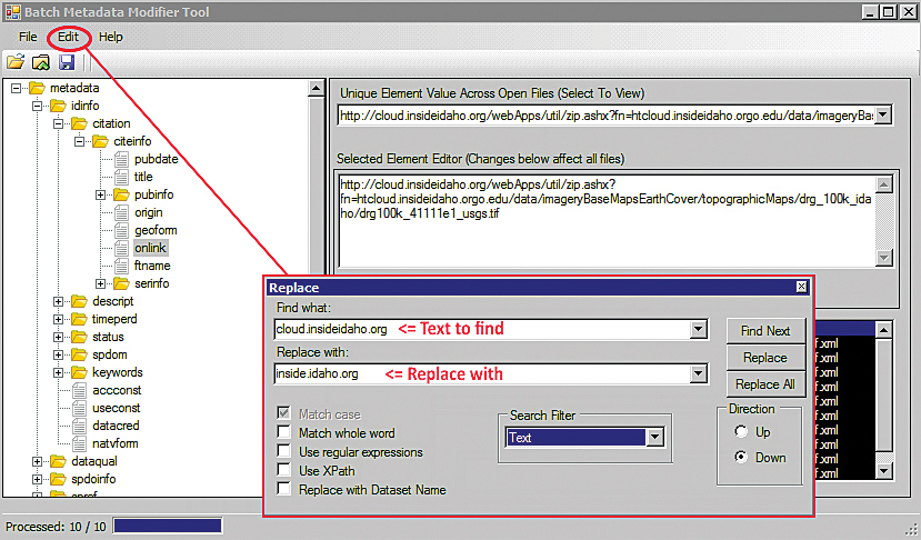 This tool is primarily designed to be used by those familiar with metadata, metadata standards, and metadata schemas, particularly those with experience modifying standardized metadata. Users of this tool must fully understand the files they are modifying and are encouraged to make copies of their documentation prior to performing batch modifications.