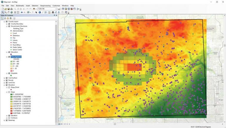 What would happen if a 20-pound drone, plus payload, crash-landed in your community? The wealth of GIS information generated by cities can help answer questions like this one. Land use, land cover, slope, building footprints, street centerlines, school locations, and other GIS data that cities maintain can be used for drone risk analysis.