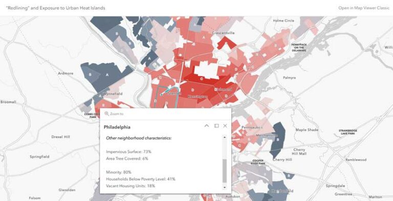 Esri Maps for Public Policy is a free resource available to planners and government leaders to address these issues using a geographic approach. This site provides curated content that can be viewed separately or added to an existing zoning map. Planners can view maps showing historical redlining policies, exposure to urban heat islands, Justice40 tracts, air quality, access to broadband, and data on many other issues.