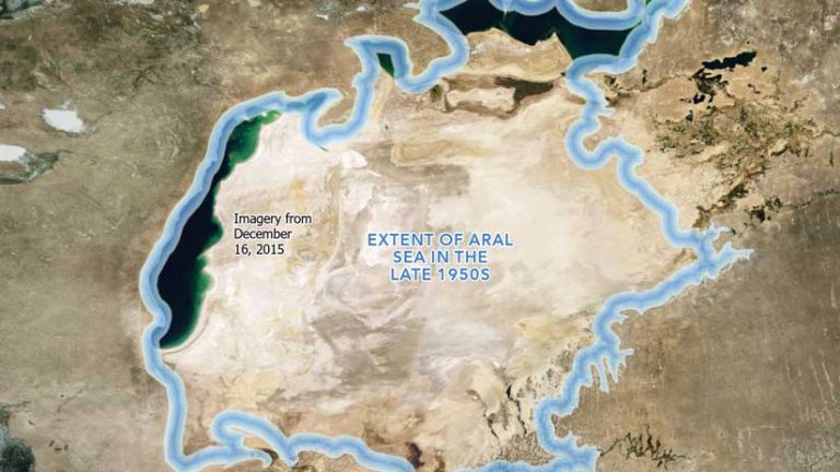 This use of vignettes is also helpful for showing extents that vary over time, such as polar sea ice, a moving oil spill, or the historic extent of the Aral Sea. Using a vignette helps convey the impermanent nature of the extent of these features.
