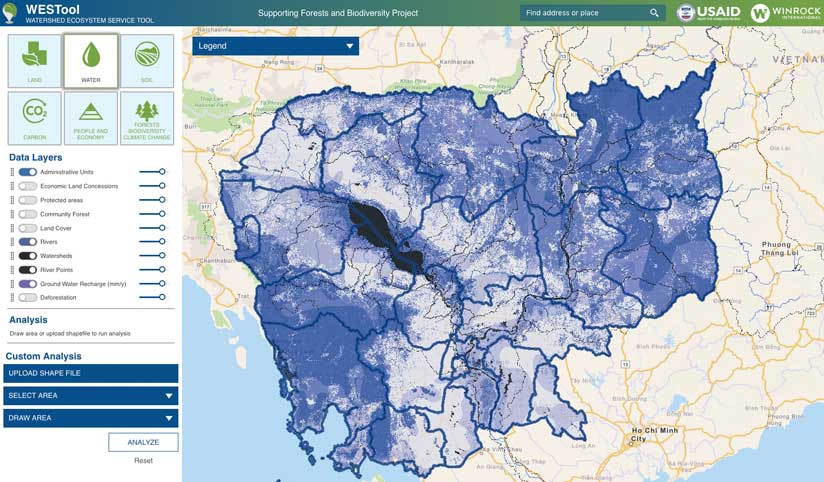 But three years ago, the nonprofit organization Winrock International stepped in with a digital tool it designed using Esri software. The Watershed Ecosystem Services Tool (WESTool) was carefully conceived with detailed stakeholder feedback and consultation to make a real difference in the health of Cambodia’s fragile ecosystems.