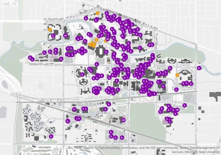 But where were these often-empty bins located on the sprawling, 2,000-acre campus in East Lansing? Which ones were no longer needed? Could more efficient routes be created for maintenance workers emptying and cleaning the most used trash cans, saving time and labor costs?