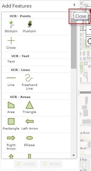 The information you add here will appear in the pop-up window when you click the map symbol. - Click the arrow to the right of Add Features to close the Add Features dialog box.
