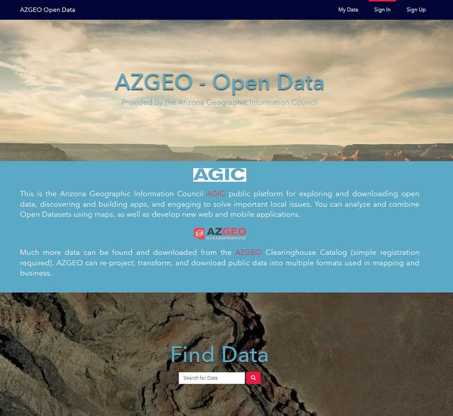 The Arizona State Cartographer’s Office recently launched AZGEO—Open Data on behalf of the Arizona Geographic Information Council (AGIC), creating a one-stop shop for data from the State of Arizona, participating municipalities, and other authoritative sources.