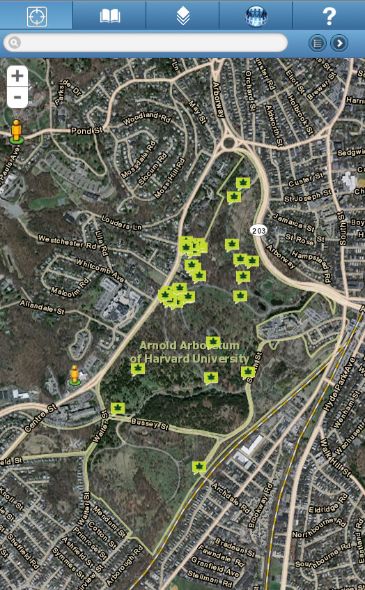 Using a new mobile mapping application developed with ArcGIS, visitors to The Arnold Arboretum of Harvard University can stroll through the lush garden with their smartphones and locate and learn more about the arboretum’s unique botanical collection. By tapping icons on the smartphone screen, they can find trees and plants, such as a full-moon maple in North Woods, the witch hazel near Hemlock Hill, and the Japanese beautyberry in Leventritt Shrub and Vine Garden.