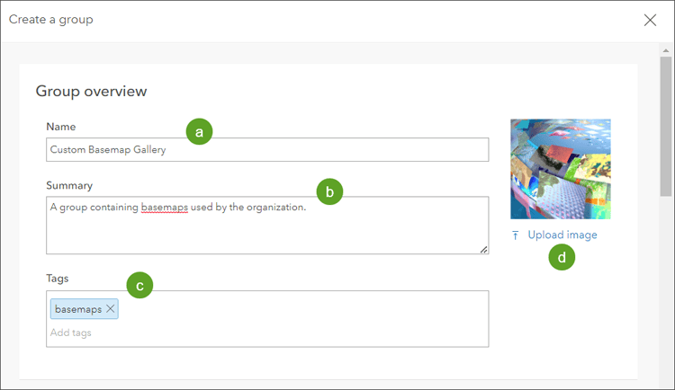 Step 1: Log in to your ArcGIS Online organization. From the Groups tab, click Create group.