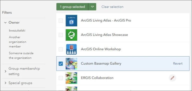 4. Setting the group as your organization’s basemap gallery.