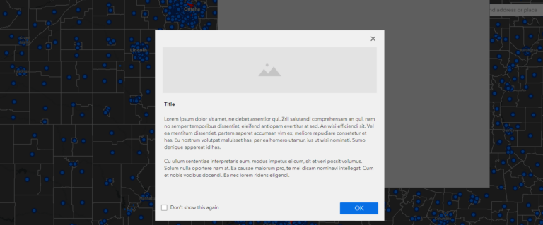 Once you choose and configure a template, add data to the map, pair the map with an infographic, and set an action trigger to display the infographic interactively, your web app will be ready to use.