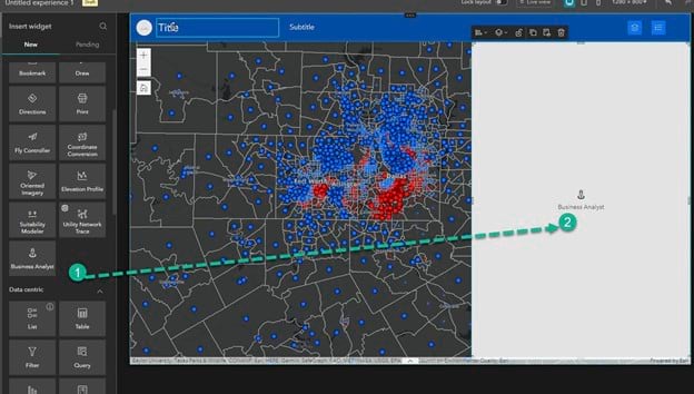 Now you will add an infographic to your web app with the Business Analyst widget. This will allow you to view more information about specific locations by interacting with the web app interface.