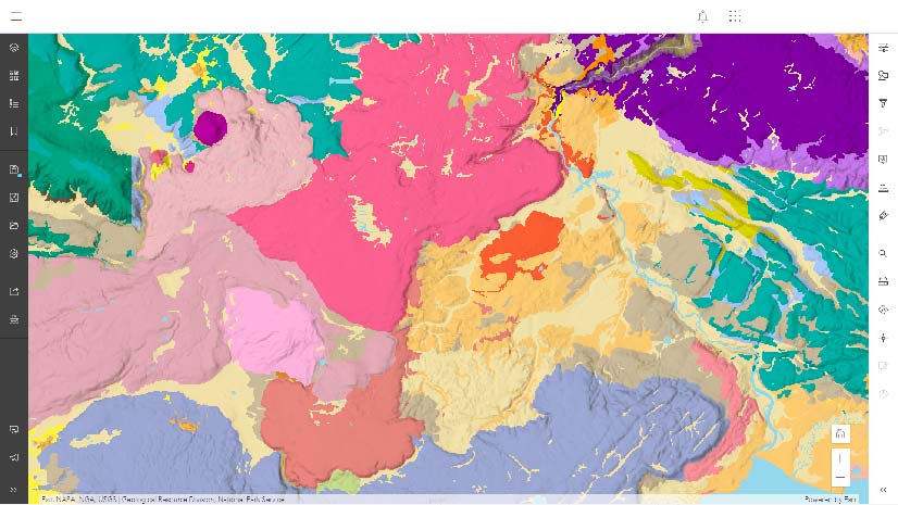 A map created using ArcGIS Pro, Cinema 4D, and other technologies shows an animation of the ten largest wildfires recorded over the last century.