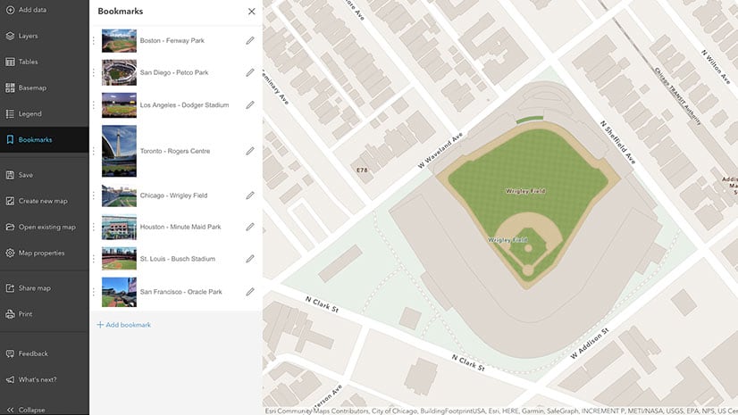 In Map Viewer Beta, you can now edit the extent, scale, and rotation of the bookmark and set a thumbnail on each bookmark in your web maps.