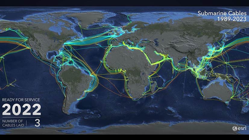 View an animated map of the worldwide system of underwater cables that carry telephone and Internet traffic.
