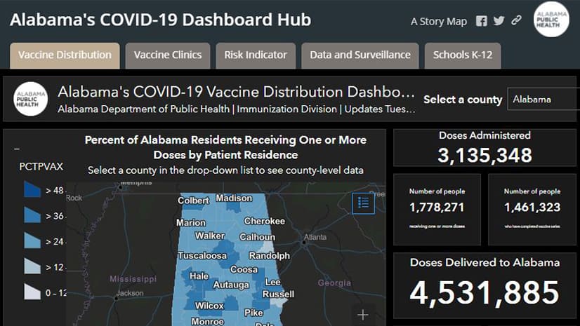 The Alabama Department of Public Health has used GIS in dealing with issues such as the Zika virus, opioid abuse, and the COVID-19 pandemic.