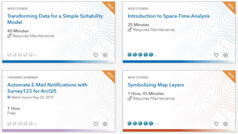Esri offers many courses, massive open online courses, (MOOCs), training seminars, and other resources to help you keep you up-to-date with GIS.