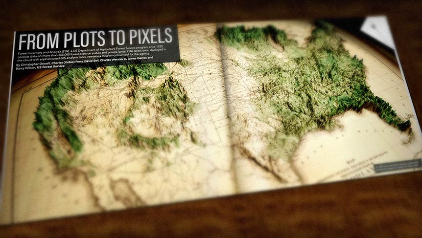 Cartographer John Nelson uses ArcGIS Pro to turn a vintage forest density map into a 3D map that uses modern forest density data.