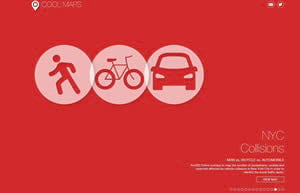 Another app now in the gallery is NYC Collisions, which maps the numbers of motor vehicle, bicycle, and pedestrian fatalities and injuries in New York City. Other maps focus on topics related to real estate, crime, economic development, urban growth, and even the world’s happiest countries.